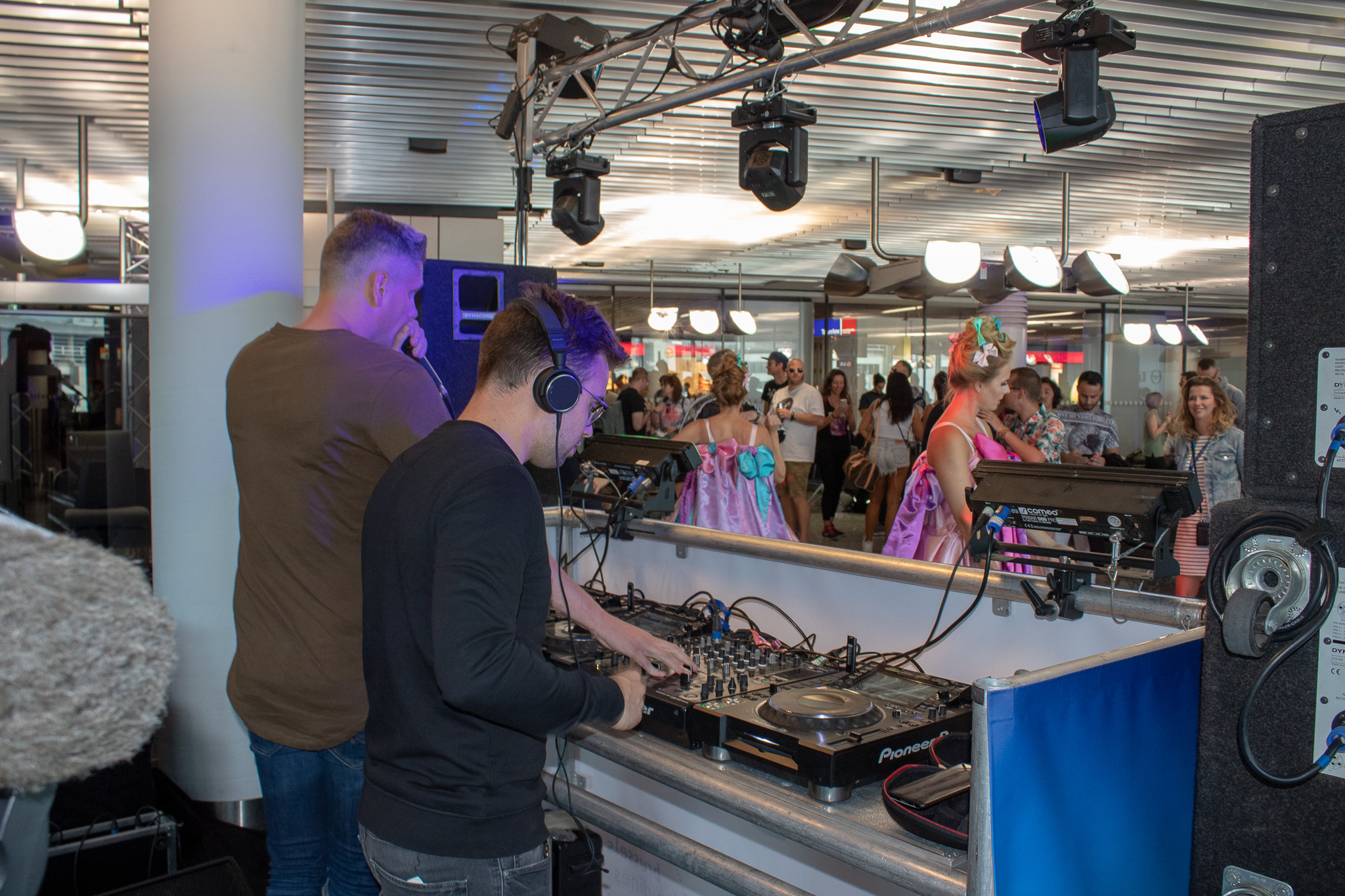 Om de festivalgangers al van bij het begin in de juiste partymood te krijgen, organiseren 16 luchthavens een gate party met live DJ’s voor vertrek. Zo ging ik mee naar Frankfurt om te checken hoe zo een gateparty er aan toeging. De eerste reizigers zijn nog wat rustig als we om 10 uur arriveerden maar na een 30 tal minuten kreeg DJ DiMaro & DJ Merlo het feestje op gang. Uniek om te zien dat er langs de ene kant van het raam doorreizende mensen staren en afvragen wat er gebeurde, langs de andere kant het vliegtuig dat staat te blinken om al die knappe feestvierders naar Boom te brengen. Tijdens de gateparty waren er drankjes en ontbijt voorzien om de feestvierders van genoeg energie te voorzien voor een knaller van een weekend.