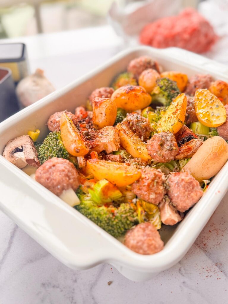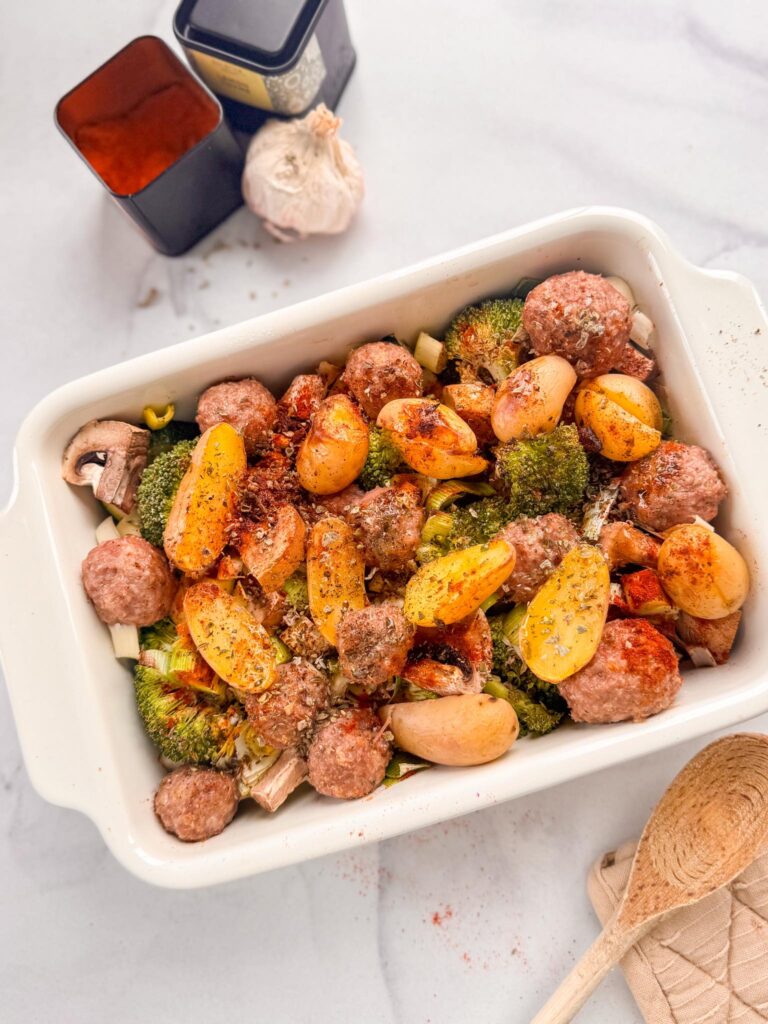 Op zoek naar een makkelijke en voedzame maaltijd uit de oven? Deze ovenschotel met gehaktballetjes, krieltjes en kleurrijke groenten is een echte topper. Ovenschotels zijn niet alleen comfort food op z’n best, ze zijn ook enorm praktisch. Je hebt vaak maar één schaal nodig, je kan makkelijk restjes verwerken en terwijl de oven zijn werk doet, heb jij je handen vrij. Ideaal voor drukke dagen of als je voor meerdere personen kookt. Ideaal voor drukke dagen waarop je toch vers en lekker wil eten.