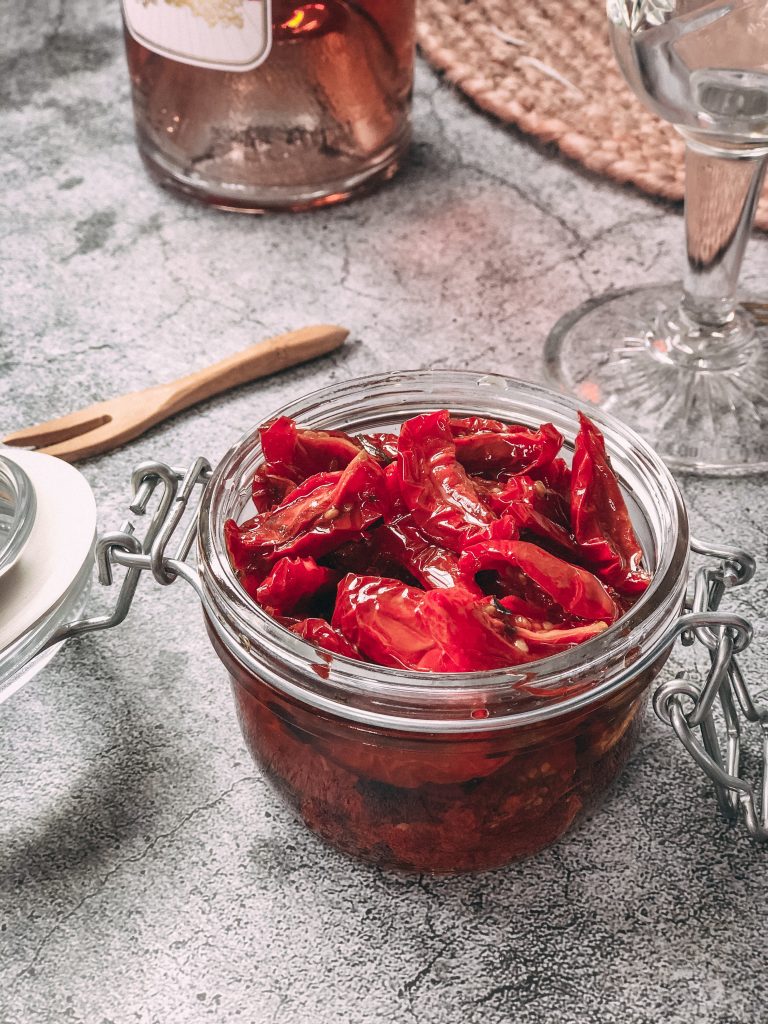 Een zomerse klassieker bij tapas: zongedroogde kerstomaatjes met olijfolie en kruiden. Serveer ze samen met brood, olijven en aioli als frisse start van de BBQ. Deze kerstomaatjes zijn het lekkerste als je ze zelf klaarmaakt, maar je kunt ze ook kant en klaar kopen in de winkel.